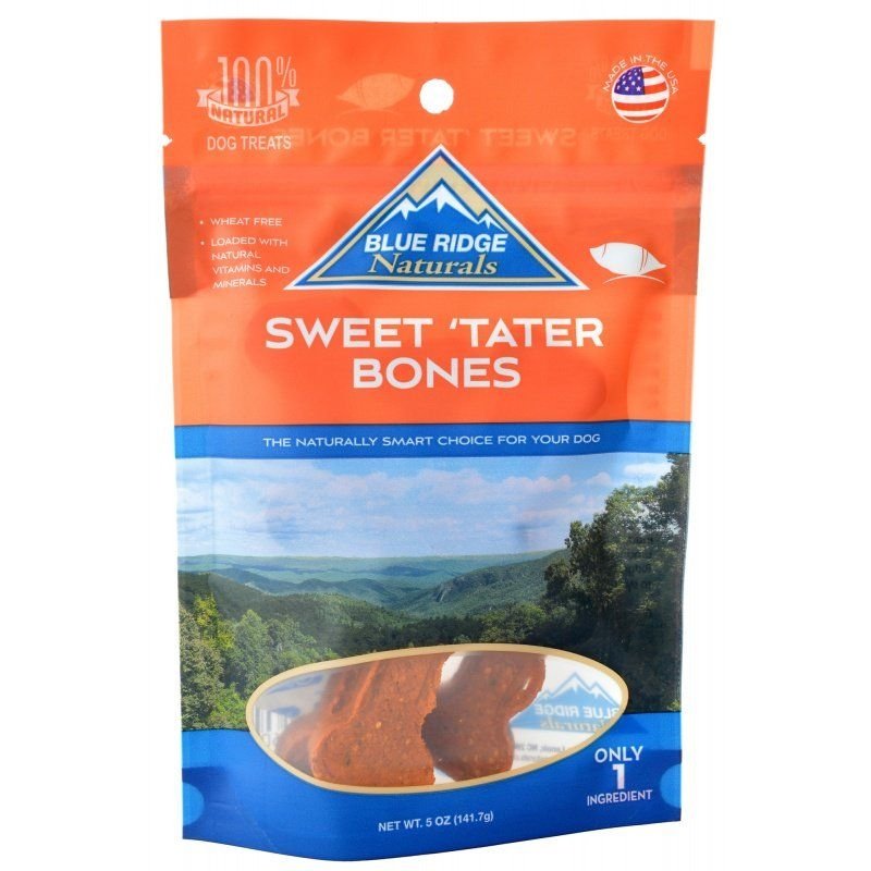 Blue Ridge Naturals Sweet Tater Bones Dog Treats are made with real, 100% natural sweet potatoes - and absolutely nothing else! These single-ingredient bones are naturally sweet, wheat-free, and loaded with vitamins and minerals to keep your dogs tail wagging.